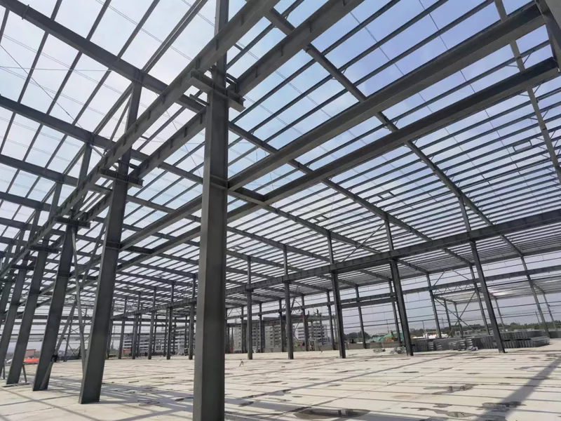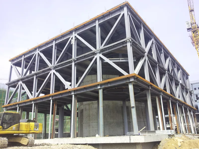 Huvudsakligen består av stålkolonner, stålbalkar, stålstöd etc. som monteras i en ramstruktur genom svetsning, bultade anslutningar etc.