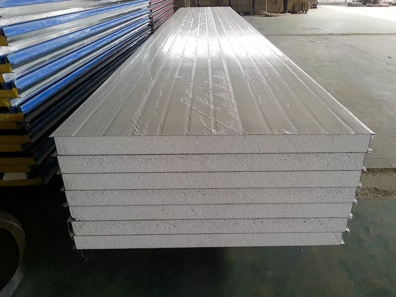 EPS-sandwichpanelen består vanligtvis av två yttre skikt, ofta gjorda av stål eller aluminium, som lägger ihop EPS-kärnan. EPS-kärnan ger exceptionella isoleringsegenskaper, vilket minskar värmeöverföringen genom panelen, medan metallskikten erbjuder styrka och hållbarhet.