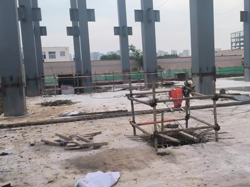 3. Installation på plats: Medan komponenterna är prefabricerade i fabriken, kommer konstruktionsteamet att i förväg gräva ner ankarbultar på byggarbetsplatsen för att slutföra grundförgravningen. Slutligen utförs monteringen av den höghusprefabricerade sjukhusbyggnaden i metall.