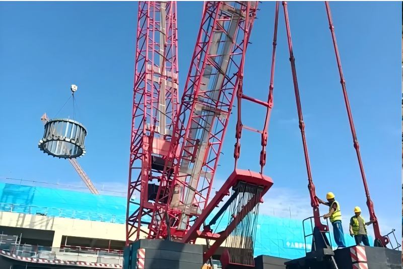 Nyligen genomfördes Dongyou-projektet i Kongtong Scenic Area, som är ett centralt kultur- och turismprojekt i Yantai City. Det uppnåddes en viktig konstruktionsmilstolpe - hissningen av den cirkulära fackverksbalken i teatercentret. På plats, när den 650 ton tunga bandkranen steg långsamt, hissades den 24 ton tunga cirkulära fackverksbalken i teaterns kärnområde upp exakt. Denna teater, som kommer att framföra den orientaliska myten, uppförde officiellt sin "stål ryggradDenna nyckelprocess markerar viktiga steg i konstruktionen av stålkonstruktionsteknik och skapar gynnsamma förutsättningar för en ordnad utveckling av hela projektet.