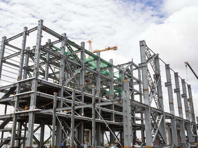 Stålkomponenter, inklusive balkar, kolumner, hängslen och takstolar, är prefabricerade i en fabriksinställning med högkvalitativ stål. Dessa komponenter är tillverkade enligt exakta specifikationer, vilket säkerställer att de passar samman exakt och säkert under installationen. Prefabriceringsprocessen involverar avancerade teknik- och svetstekniker för att garantera kvaliteten och hållbarheten för varje bit.
