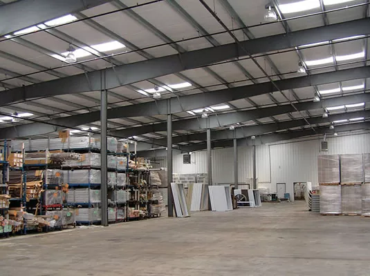 Tillverkningsanläggningar: Stålkonstruktionslager kan anpassas för att hysa tillverkningsverksamheten, inklusive tunga maskiner och produktionslinjer. Deras robusta design säkerställer säkerhet och effektivitet i tillverkningsprocessen.