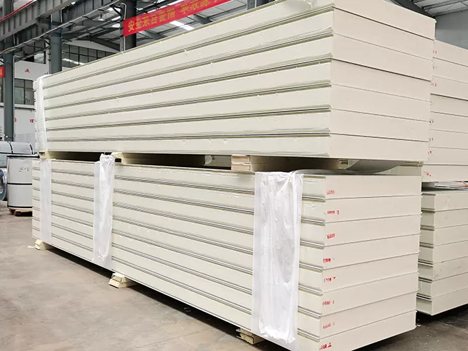 Hållbarhet och styrka: De yttre metallskikten på PU-sandwichpanelerna erbjuder hållbarhet och strukturell styrka.  De är designade för att motstå ogynnsamma väderförhållanden, såsom hård vind, regn och snö, vilket säkerställer husets stabilitet och livslängd.